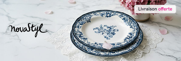 Lot de 6 assiettes creuses fleuries en porcelaine bleu 22cm FAUSTINE