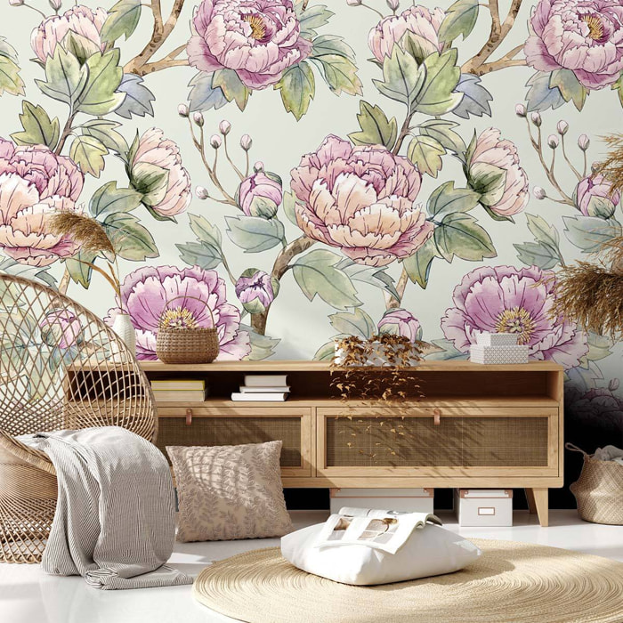 Papier peint panoramique géométrique - Rose