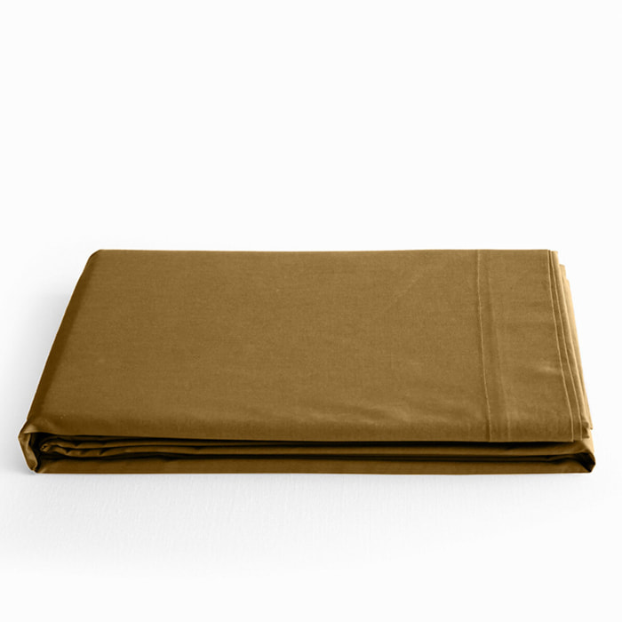 Drap plat uni en satin de coton bio, TEOPHILE, Marron Moyen