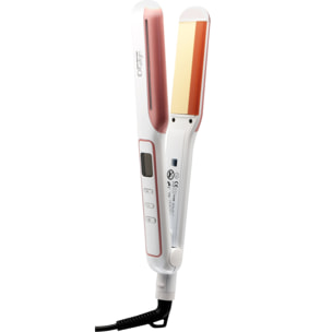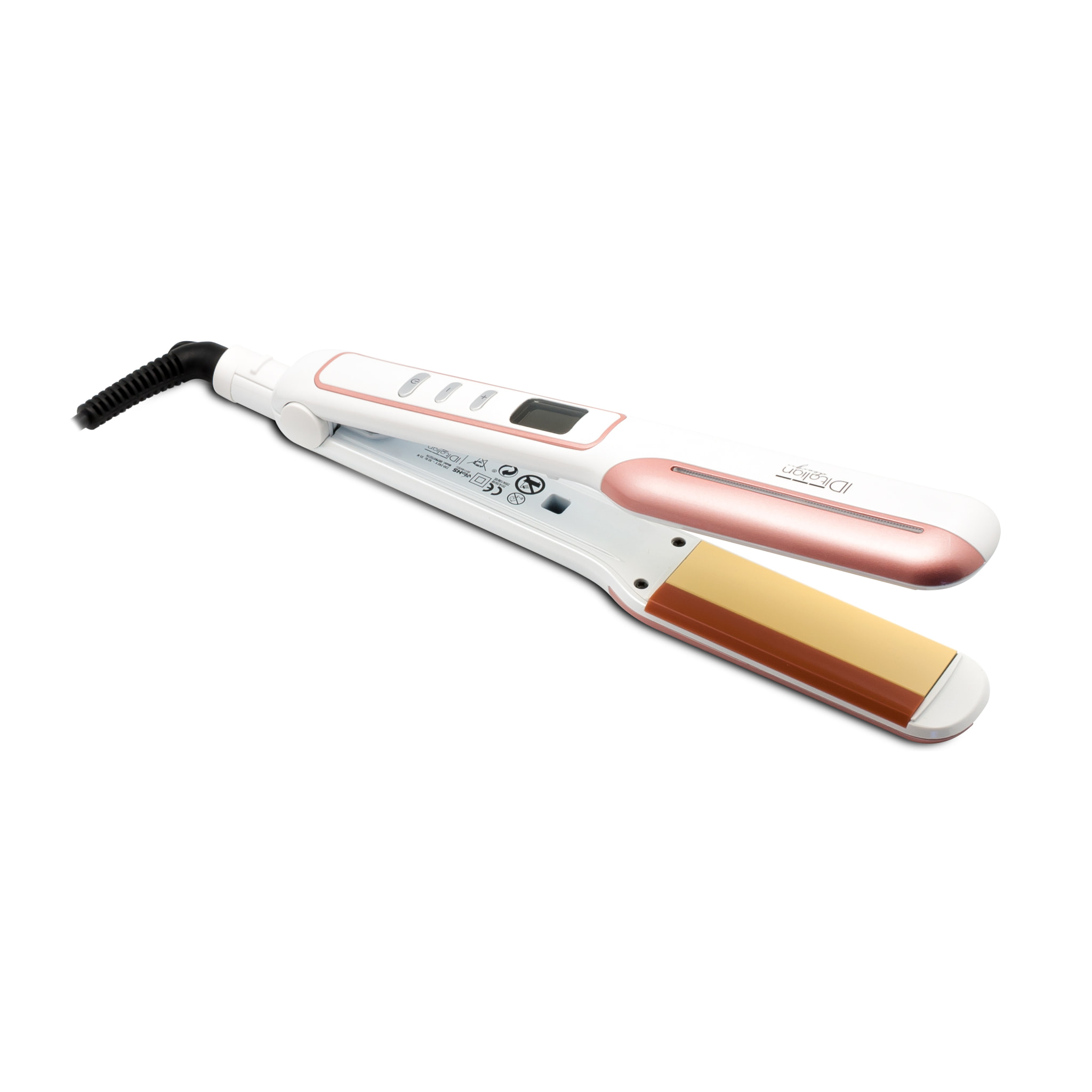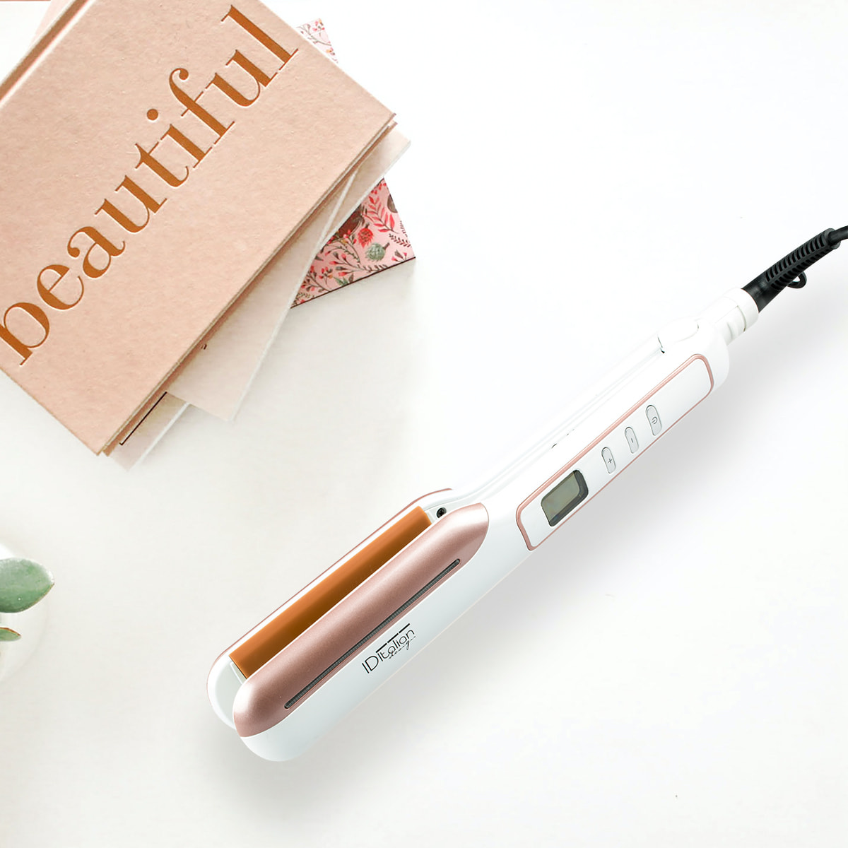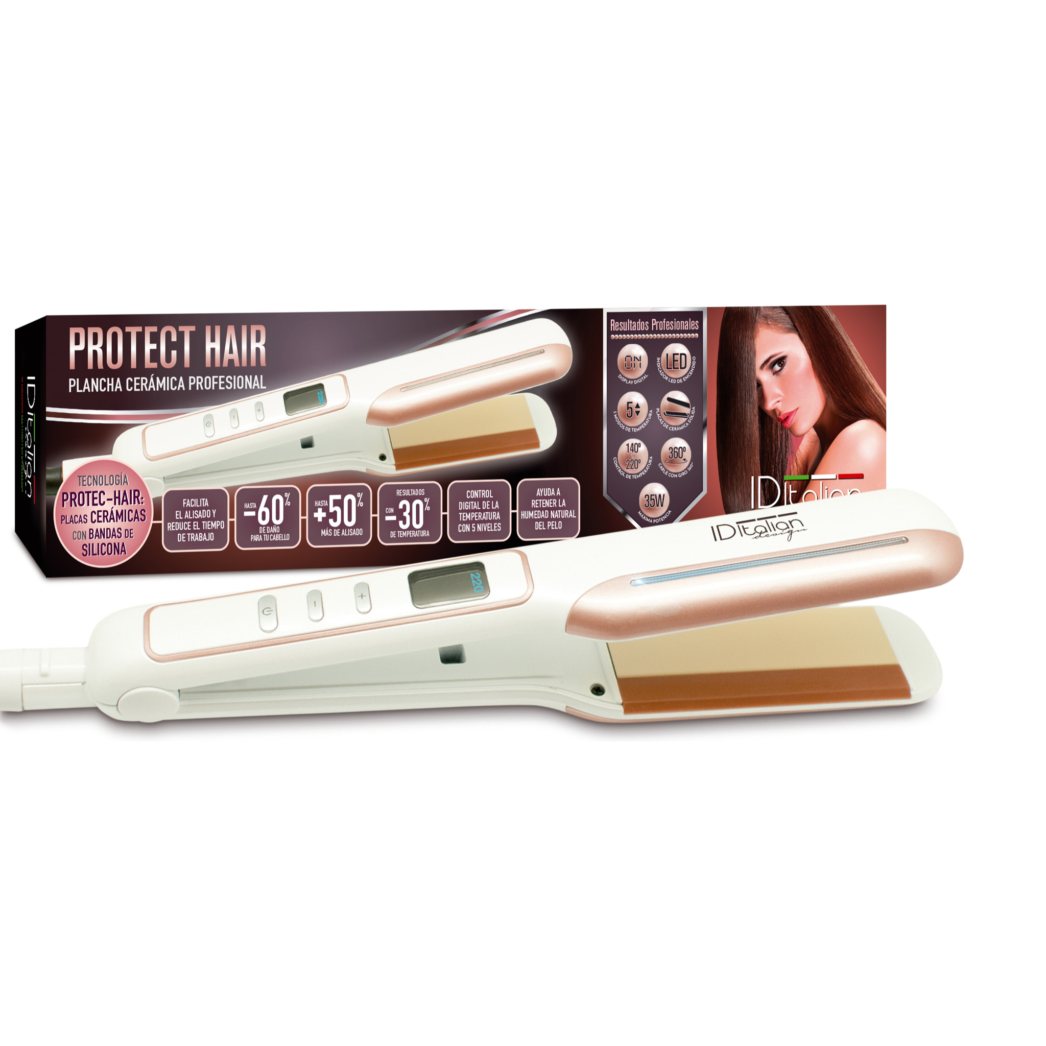 Ref. ideprotech la marque italian design, l'une des principales marques d'appareils électroménagers professionnels et d'accessoires, de coiffure et d'esthétique. description id italian fait une percée dans la technologie dans son nouveau fer protec hair qui, avec des plaques en céramique 100% solides, sa régulation numérique de la température et sa bande de silicone optimise le contact entre les cheveux et les plaques, facilite le lissage de chaque touffe et réalise un redressement parfait en un seul passage, protégeant les cheveux et avec seulement 140-160 ° mais atteint les 220 ° numériquement. caractéristiques techniques: - jusqu'à 50% de lissage en plus - réduit le temps de travail - pas besoin de trop de pression sur les cheveux - avec une température 30% inférieure à celle d'un fer normal. - moins 60% de dégâts aux cheveux. - aide à conserver l'humidité naturelle des cheveux. - chauffage ultra-rapide.. - affichage numérique. - sélecteur de température de 140 a 220º - voyant led bleu à l'extérieur de la plaque supérieure. - 35w - dimensions: 320 x 85 x 50 mm