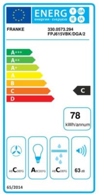 Consommation d'énergie Classe d'efficacité énergétique: C, Consommation annuelle d'énergie en kWh: 78 kWh, Classe d'efficacité d'évacuation de la vapeur et fumées: C, Classe d'efficacité de l'éclairage: A, Classe d'efficacité de filtration des graisses: C