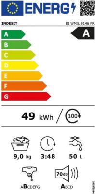 Consommation d'électricité pour 100 cycles (programme éco) 49.0