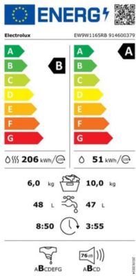 Consommation d'électricité pour 100 cycles (programme éco, lavage et séchage) 206.0