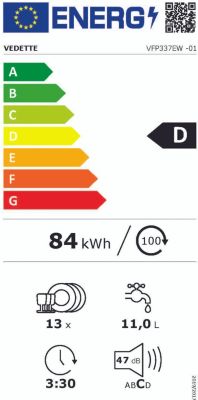 Consommation en électricité pour 100 cycles (programme éco) 84.0