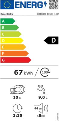 | Consommation en électricité pour 100 cycles (programme éco) : | 67 kWh |