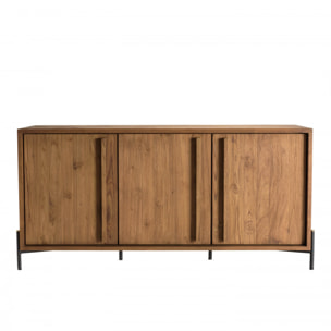 Buffet 3 portes en bois de teck recyclé pieds en métal noir. Dimensions : 148 x 42.5 x 70 cm. Article en Teck recyclé. Meuble monté Optez pour un meuble de rangement minimaliste chez vous ! Doté de 3 portes et 3 étagères, il vous permettra de ranger vos objets du quotidien. Ses jolies matières trouveront parfaitement leur place dans votre pièce de vie.