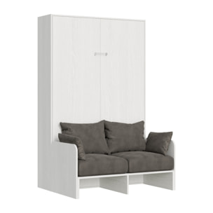 De nos jours, quand la modernité nous pousse dans des espaces de vie toujours plus petits, le modèle d’armoire lit escamotable vertical 1 place et demi 120 KENTARO avec canapé est proposé, une idée originale qui transforme en quelques geste le salon en un zone de couchage, devenant un confortable lit 1 place et demi escamotable. Une solution parfaite pour les studios et les petits espaces où chaque mètre carré est important : ce modèle intelligent vous permet d'optimiser votre espace, sans sacrifier la commodité, le confort et le design. Les coussins sont en microfibre couleur comme photo (ALESSIA 20) et ils sont entièrement déhoussables. Lorsqu'il est ouvert, le lit escamotable a les mêmes caractéristiques et le même confort qu'un lit normal, mais lorsqu'il est fermé est doté d'un canapé à l'avant, devenant ainsi un meuble qui peut également être utilisé pendant la journée ; il n'occupe que 105 cm de profondeur, ce qui vous permet de profiter pleinement de toute la surface disponible, cette fonctionnalité vous permet de transformer le salon en un zone de couchage avec des simples gestes. Le mouvement du lit de haut en bas est assisté par des pistons à gaz, équipé d'une poignée pour faciliter la descente. Le matelas pouvant être utilisé ne doit pas dépasser 24 cm d'épaisseur. Lorsqu'il est ouvert, la hauteur nette du sol du sommier est de 22 cm. Le lit doit être impérativement fixe au mur. Lit livré démonté. Remarque importante sur le montage : difficulté de montage élevée, le montage de l’armoire lit escamotable vertical KENTARO avec canapé demande un degré élevé de difficulté et nécessite deux experts pour le réaliser. La structure du sommier est en fer renforcé peint à la poudre époxy, couleur aluminium gaufré ; sommier à lattes en hêtre de 123x190 cm avec deux sangles de fixation de matelas inclus. Taille du matelas, non inclus, recommandée : 120x190x22 cm. Les panneaux sont constitués de microparticules de bois de 18 mm d'épaisseur. Capacité maximale du lit 250 Kg. Entièrement fabriqué en Italie. Dimensions : L.134 P.105 H.210 cm (lit ouvert L.134 P.210 H.210 cm). Fabriqué par Itamoby