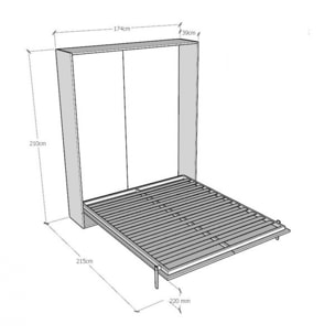 L'espace, comme certains éléments d'ameublement, est indispensable dans une maison. Ne renoncez pas à un repos sain. Désormais avec l’armoire lit escamotable vertical double 160 KENTARO vous aurez tout le confort dont vous avez besoin dans un tout petit espace : seulement 39 cm de profondeur, vous aurez donc tout l'espace disponible pour d'autres activités quotidiennes. Lorsqu'il est ouvert, il ne prend pas plus d’espace qu'un lit normal, seulement 210 cm. Particulièrement adapté dans les studios ou dans les environnements où il y a un besoin d'espaces utiles pendant la journée. Le mouvement du lit de haut en bas est assisté par des pistons à gaz, équipé d'une poignée pour faciliter la descente. Le matelas pouvant être utilisé ne doit pas dépasser 24 cm d'épaisseur. Lorsqu'il est ouvert, la hauteur nette du sol du sommier est de 22 cm. Le lit doit être impérativement fixe au mur. Lit livré démonté. Remarque importante sur le montage : difficulté de montage élevée, le montage de l’armoire lit escamotable vertical KENTARO demande un degré élevé de difficulté et nécessite deux experts pour le réaliser. La structure du sommier est en fer renforcé peint à la poudre époxy, couleur aluminium gaufré ; sommier à lattes en hêtre de 163x190 cm avec deux sangles de fixation de matelas inclus. Taille du matelas, non inclus, recommandée : 160x190x22 cm. Les panneaux sont constitués de microparticules de bois de 18 mm d'épaisseur. Capacité maximale du lit 250 Kg. Entièrement fabriqué en Italie. Dimensions : L.174 P.39 H.210 cm (lit ouvert L.174 P.210 H.210 cm). Fabriqué par Itamoby