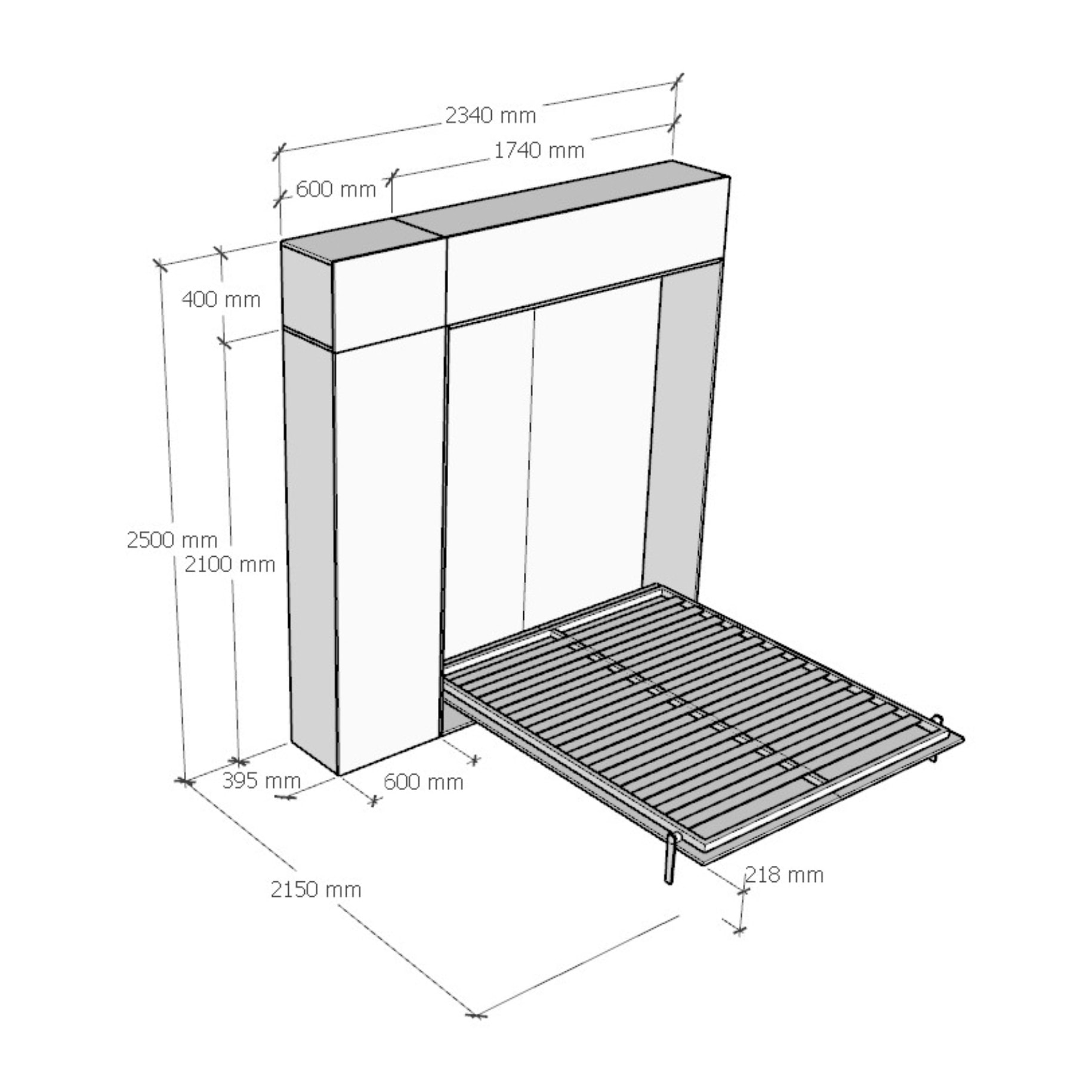 • Armoire Lit escamotable vertical double 160 KENTARO Noyer avec colonne de rangement et deux éléments hauts