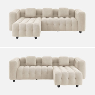 Vous allez craquer pour ce fauteuil au design capitonné et au revêtement bouclette. Avec ses formes arrondies qui lui donne un look tendance, il apportera à votre salon une touche de caractère en rendant votre pièce unique et chaleureuse. Sa méridienne réversible vous permet de l'agencer selon vos besoins et vos envies. Grâce à sa densité parfaitement équilibrée, il offre le juste milieu entre fermeté et moelleux, vous n'allez plus vouloir le quitter !