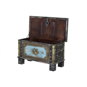 Coffre - bois de manguier - noir effet vieilli et bleu - 80 x 40 x 45 cm