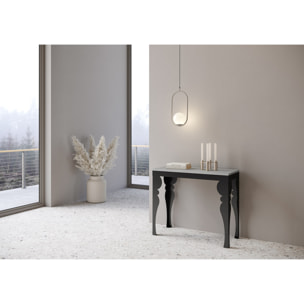 La console extensible PAXON SMALL EVOLUTION a un design moderne et reconnaissable. La caractéristique de ce modèle sont les pieds particulières finement élaborées de manière arabesque dans la forme. Une console qui s'intègre parfaitement dans n'importe quel environnement, l'enrichissant de son raffinement typique. La console a un bord de périmètre en fer peint travaillé au laser qui donne à la table une sensation de force unique. La console PAXON SMALL EVOLUTION est équipée de trois rallonges que vous permettent d'allonger la console jusqu'à 196 cm et d'accueillir autant d'amis que vous souhaitez inviter chez vous. Extrêmement polyvalent : lorsqu'elle est fermée, elle reste petite, compacte et facile à manipuler, lorsqu'elle est ouverte, elle se transforme en quelques mouvements en une table de repas pratique capable d'accueillir confortablement jusqu'à 10 personnes. Dessus et rallonges en microparticules de bois et structure en métal peint. La structure en métal robuste, travaillé au laser, et le système de support central à deux pieds, inclus dans le prix, permettent à la console de rester stable et solide même lorsqu'elle est complètement déployée à son extension maximale. Dimensions : L.90 P.40 H.77 (extensible à 92 / 144 / 196 cm). Fabriquée par Itamoby