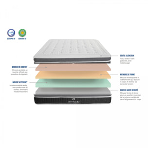 - Technologie hybride : Mémoire de forme & Mousse Hypersoft