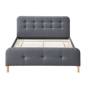 Lit 2 places 160x200 cm en tissu gris foncé capitonné HOLSEN livré prêt à assembler.