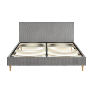 La tête de lit avec finition en velours côtelé procure un soutien additionnel qui améliore le confort global du lit, la rendant particulièrement agréable.