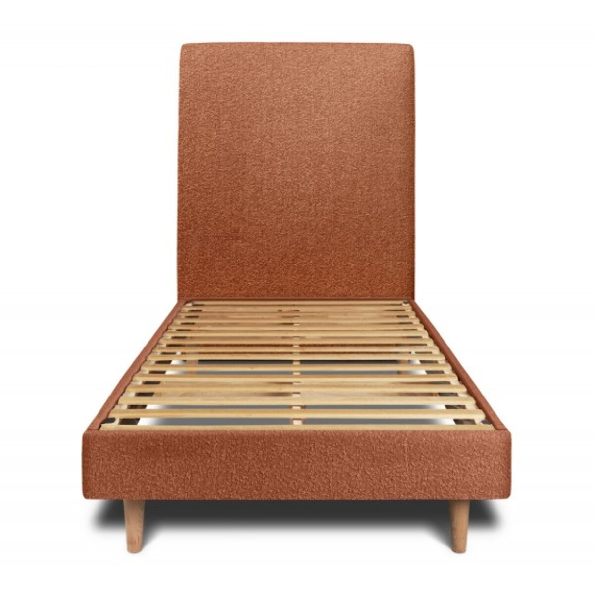 • Lit avec tête de lit tapissée bouclette et sommier kit Ep14