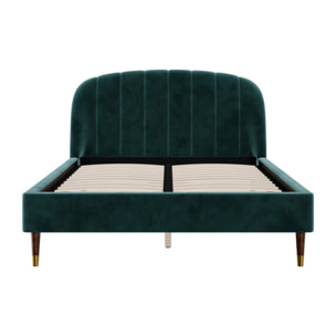 Ce lit double en velours vert avec pieds dorés sera la pièce maîtresse parfaite pour sublimer votre chambre à coucher et créer un espace auquel le confort et le style se marient harmonieusement.