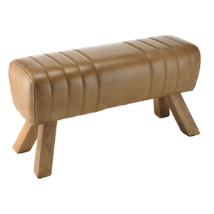 Banc matelassé cuir marron pieds inclinés en bois de manguier. Article en cuir / matière. Dimension 89 x 32 x 48 cm. Meuble monté Envie d'une touche d'originalité dans votre intérieur? Craquez pour ce banc matelassé en cuir marron. Sa forme atypique s'intégrera dans de nombreuses pièces de votre maison ; chambre, entrée, salon il trouvera sa place facilement.