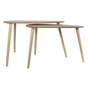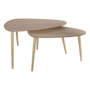 Les tables gigognes ont le vent en poupe ! Découvrez ce modèle en bois agrémenté d'un plateau en forme de galet. Il est réalisé en bois, vous serez séduit par sa qualité et pourrez apporter un style moderne à votre intérieur tout en adaptant ce duo à vos besoins. Convivialité et charme seront au rendez-vous dans votre salon avec ce duo de tables.