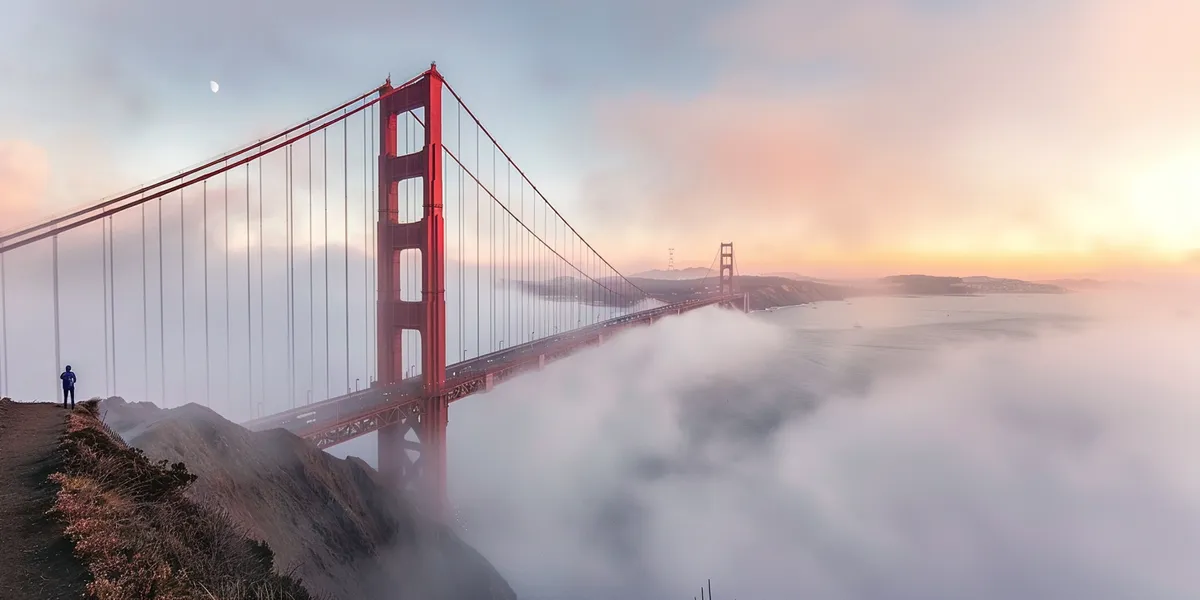Lors de votre visite de San Francisco, le Golden Gate Bridge est évidemment l'incontournable absolu. Ce pont rouge flamboyant, véritable icône de l'ouest américain, se découvre à pied, à vélo (que vous pouvez louer en libre service dans toute la ville) ou en voiture. Depuis les Marin Headlands, la vue sur San Francisco est tout simplement magique, surtout quand la brume matinale enveloppe la baie.