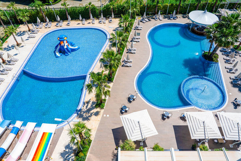Ce complexe hôtelier possède 2 piscines extérieures et vous offre un accès à 100 m à la longue plage de Golem. Vous trouverez également un espace bien-être, un parc aquatique avec 4 toboggans et une équipe d'animation francophone, vous permettant de combiner parfaitement détente et loisirs, plage et activités en plein air.