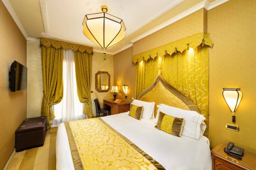Situé dans le quartier paisible de Cannaregio, l’Hôtel Ai Mori d’Oriente 4* incarne l’élégance vénitienne avec une touche d’inspiration orientale. Installé dans un bâtiment historique, il offre des chambres raffinées décorées dans un style mauresque élégant, mêlant tissus précieux, mobilier classique et ambiance chaleureuse. L’établissement séduit par son atmosphère romantique, son service attentionné et sa localisation idéale, à proximité du Grand Canal et des principales attractions de Venise, tout en préservant un cadre calme et authentique.