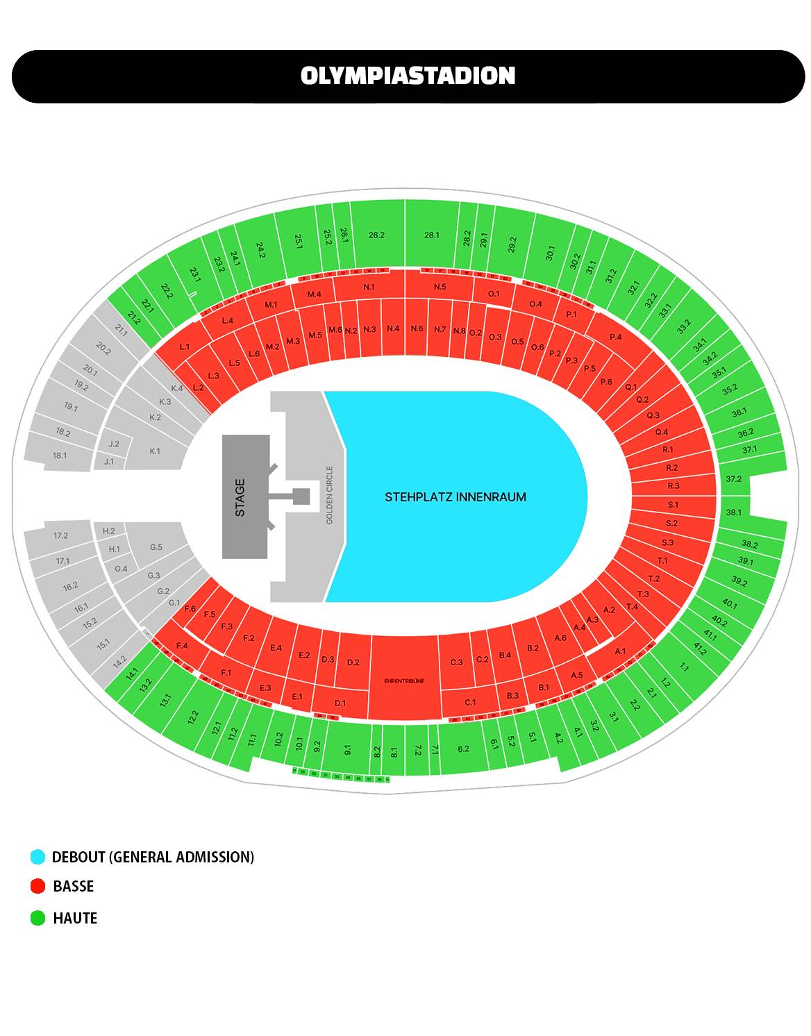 • Catégorie Haute : Sièges en tribune haute.