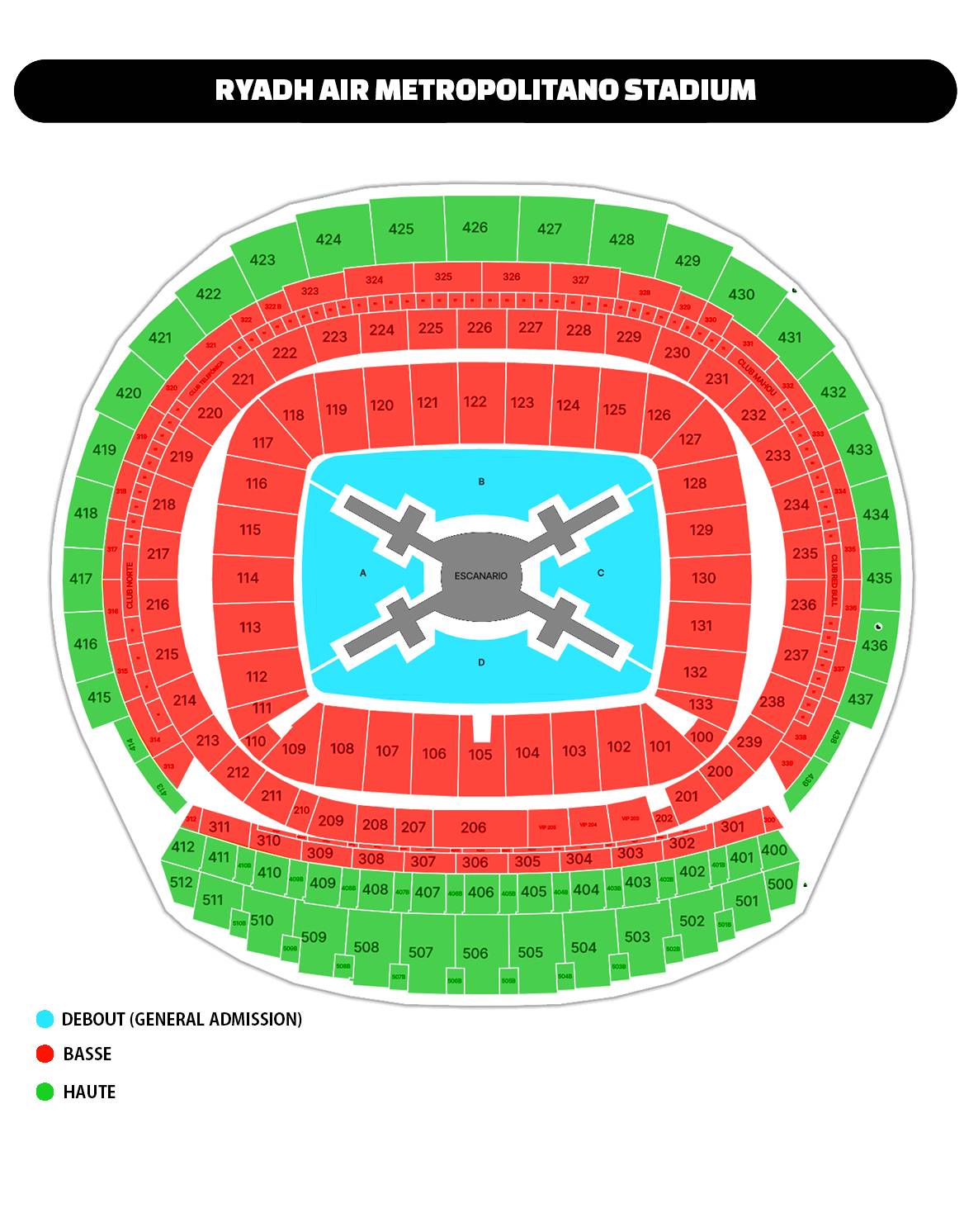 • Catégorie Haute : Sièges en tribune haute.