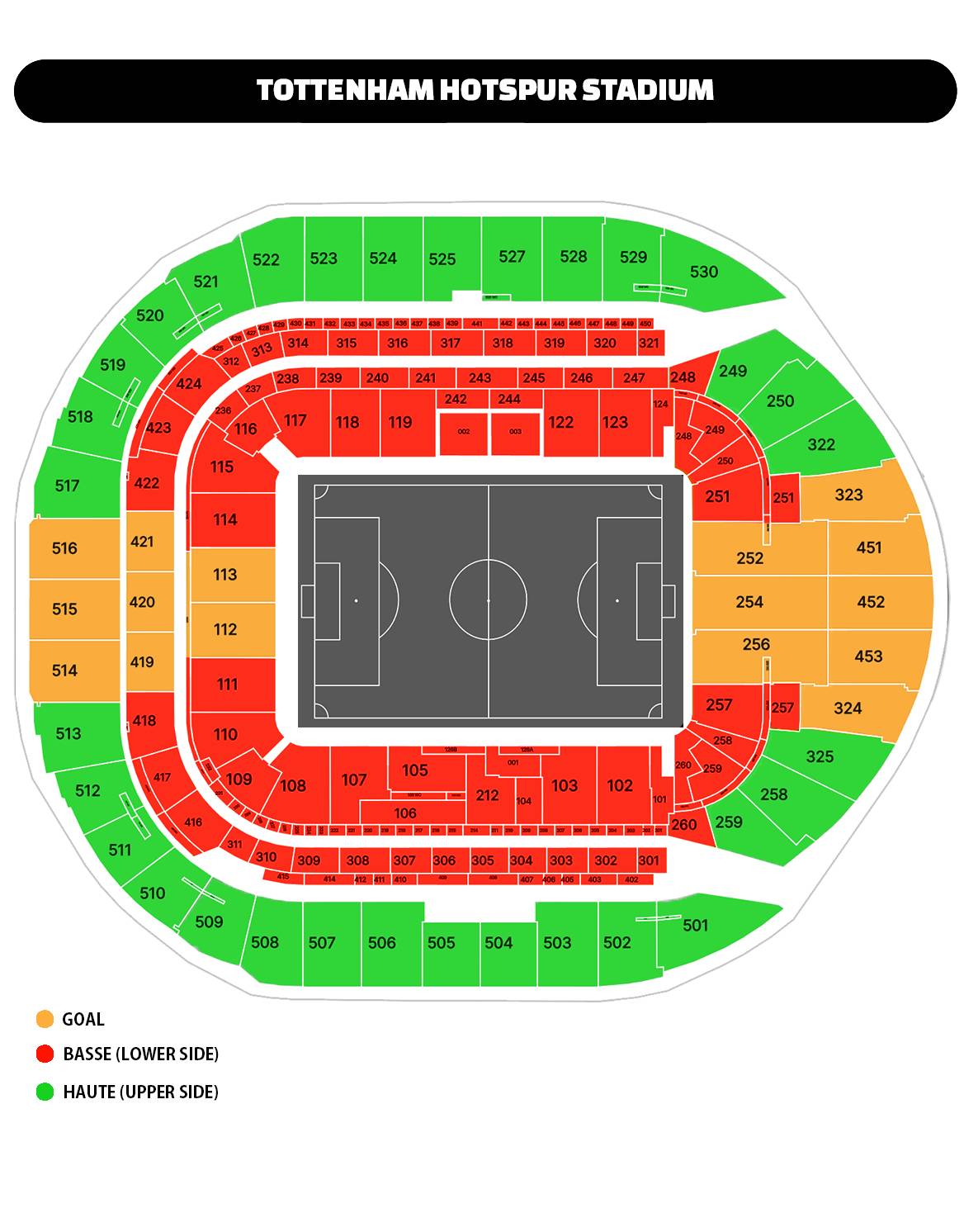- Catégorie Latérale Basse : Sièges en tribune intermédiaire ou basse.