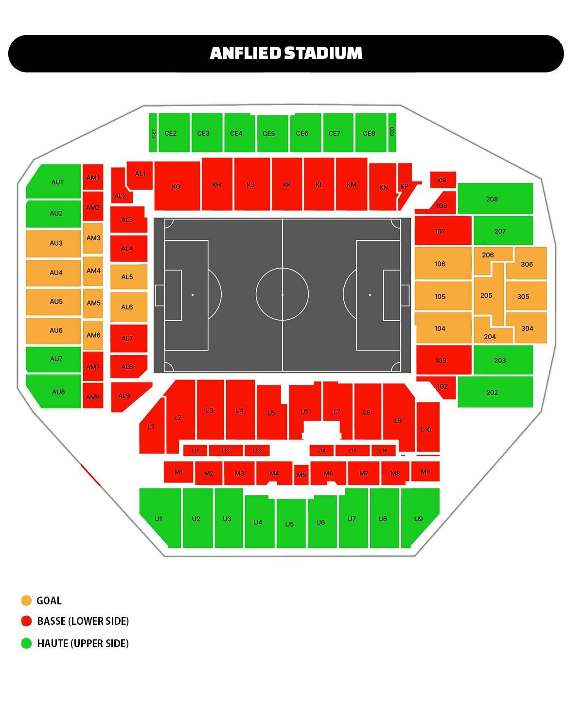 - Catégorie Latérale Haute : Sièges en tribune haute.