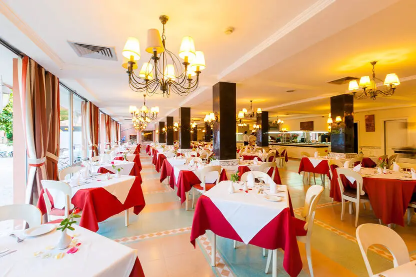 Le Chems dispose d'un restaurant avec vue sur la piscine et les jardins.- Formule demi-pension (hors boissons, hors eau) : petit déjeuner et dîner servis sous forme de buffet ou menu fixe.
