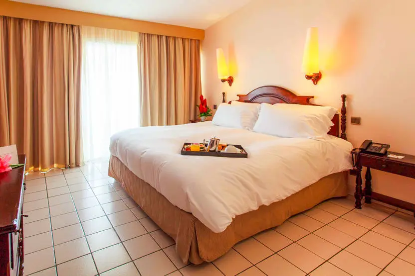 L'hôtel Bakoua dispose de 138 chambres réparties dans plusieurs bâtiments de style créole. Durant votre séjour, vous serez logés en chambre supérieure vue jardin en rez-de-chaussée (30-40 m²) :
