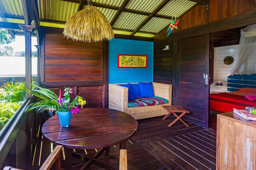 - Ecolodge Cabane du Pirate avec spa privatif (50 m²) : 1 chambre avec 1 lit double, 1 chambre avec 2 lits superposés, 1 salle de bain avec douche, wi-fi, moustiquaire, terrasse avec cuisine équipée et bain à remous privatif. Capacité maximum : 2 adultes + 2 enfants.