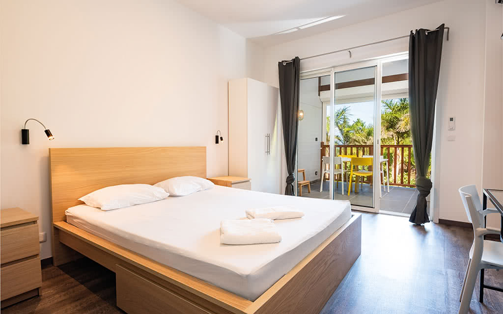 • Vivez au cœur d'une grande palmeraie, à deux pas de la plage préservée de la Pointe Faula. Logements climatisés, spacieux et entièrement équipés, pour profiter d’un confort total en toute autonomie Détendez-vous dans un véritable havre de paix entre piscine, nature luxuriante et lagon turquoise. Découvrez un cadre idéal pour les activités nautiques.