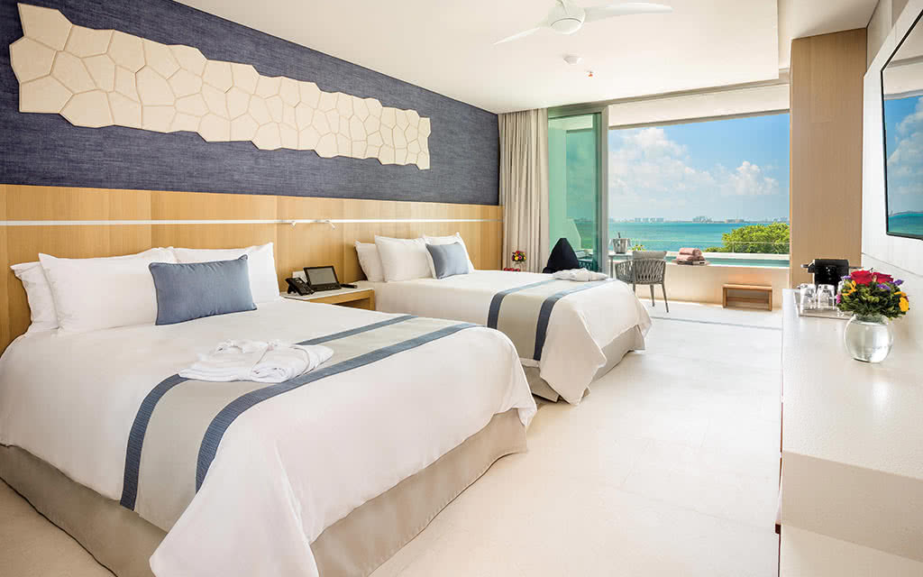Dreams Vista Cancun Resort & Spa dispose de 416 chambres et suites spacieuses, avec vue sur l'océan, avec un design moderne et bien équipé.