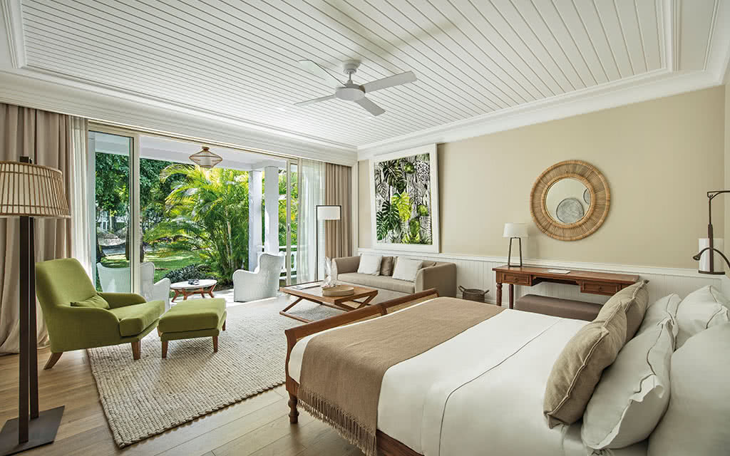 Heritage Le Telfair, membre des Small Luxury Hotels, dispose de 158 Suites spacieuses avec une vue sur la mer ou les jardins. La décoration intérieure se veut contemporaine et inspirée du style de plantation. Quant aux 20 pavillons distincts en 6 ou 8 suites, elles sont conçues comme un village paisible