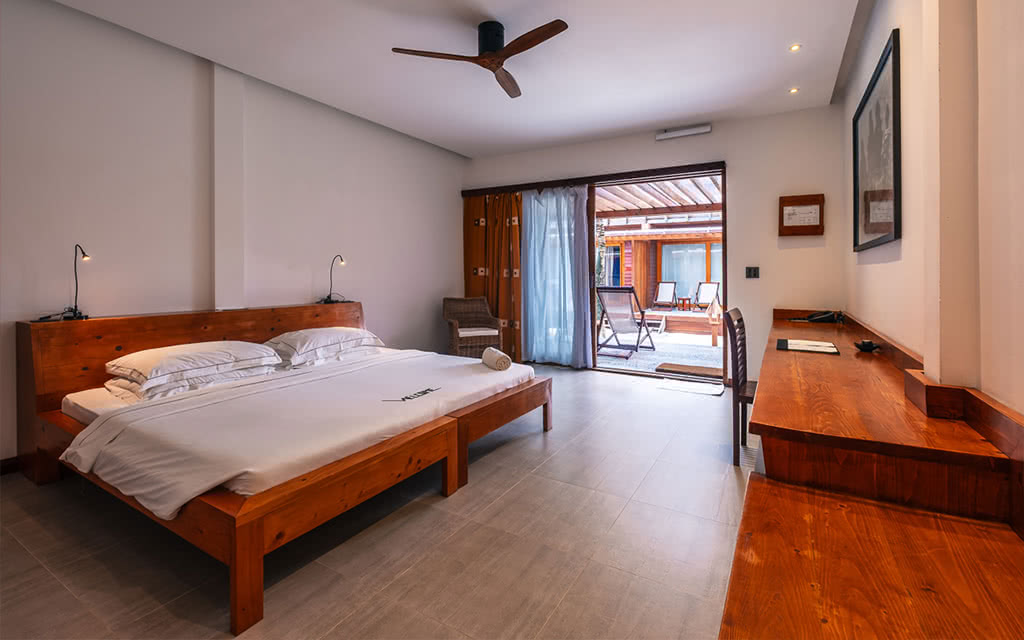 Ces nouvelles chambres de charme sont meublées avec des matériaux élégants et des équipements contemporains, y compris un spacieux patio privé équipé d'une balançoire maldivienne.