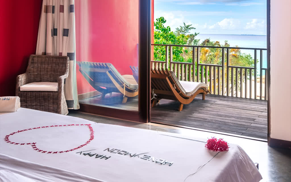 02 chambre Beach Front interconnecté font les chambres famille avec veranda, situées au rez-de-chaussée avec un accès direct à la plage avec grand lit ou lits jumeaux.