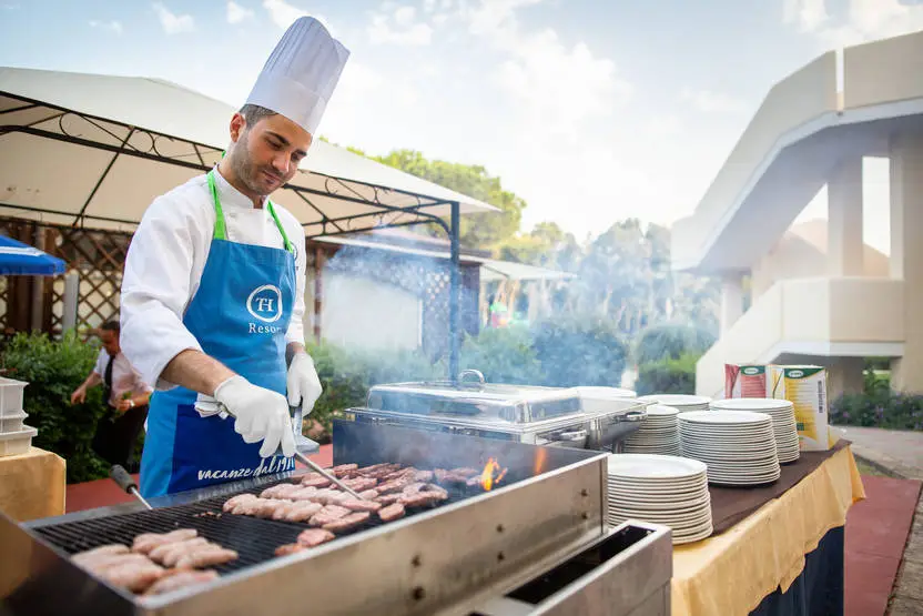L'hôtel dispose d'un restaurant principal qui propose une cuisine internationale et méditerranéenne sous forme de buffet avec 1 dîner à thème/semaine autour des plats typiques de la région. L'hôtel dispose également de 2 bars : le bar principal (10h-00h) situé près de la piscine et le bar de la plage (10h-19h).