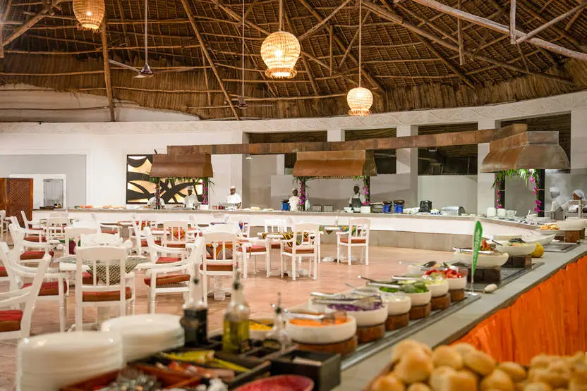 - Restaurant principal, avec les repas servis sous forme de buffet : cuisine internationale, locale et cuisine italienne. Dîner à thème certains soirs et show-cooking.