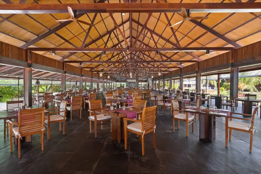 - Selon la législation des Maldives, la vente et la consommation d'alcool ne sont pas autorisées sur l'île. L'hôtel met à disposition des clients un bar flottant dans le lagon pouvant servir divers alcools et cocktails (voir rubrique Restauration).